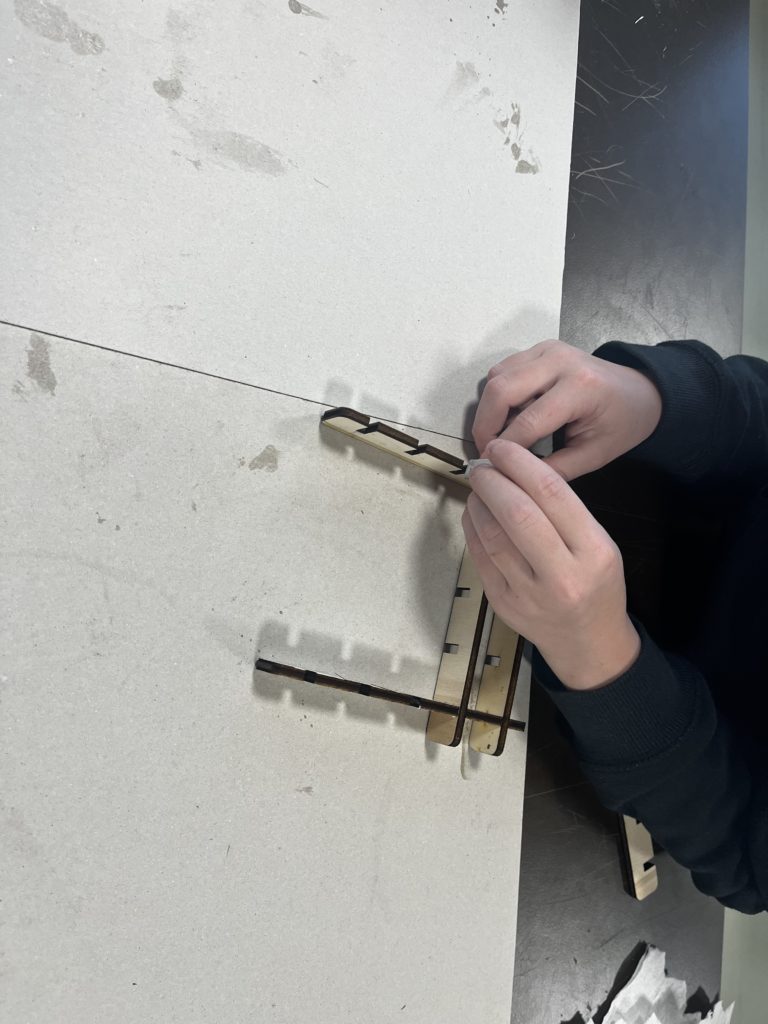 • à l’aide d’une découpeuse laser et j’ai créé les pièce et à la fin j’ai assemblé les pièce avec de la colle blanche.