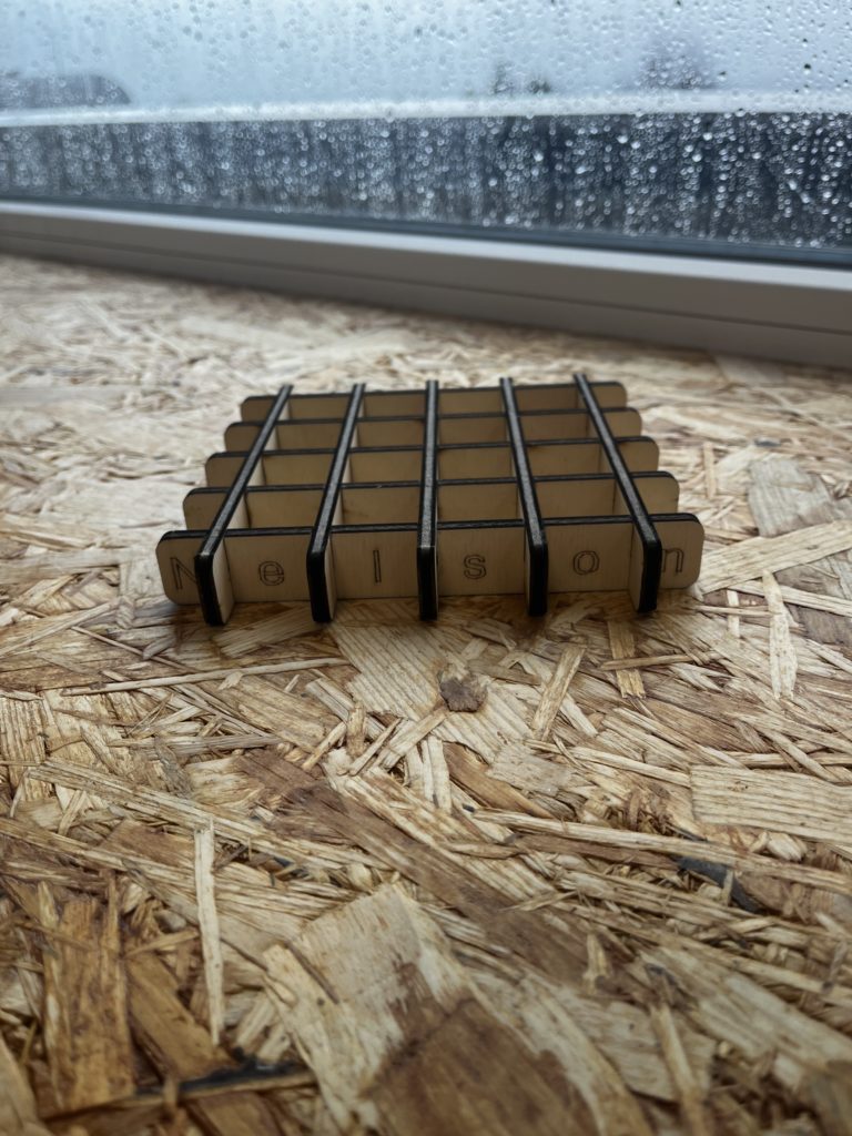 J’ai créé un dessous plat en bois contreplaqué découpé à la découpeuse laser.